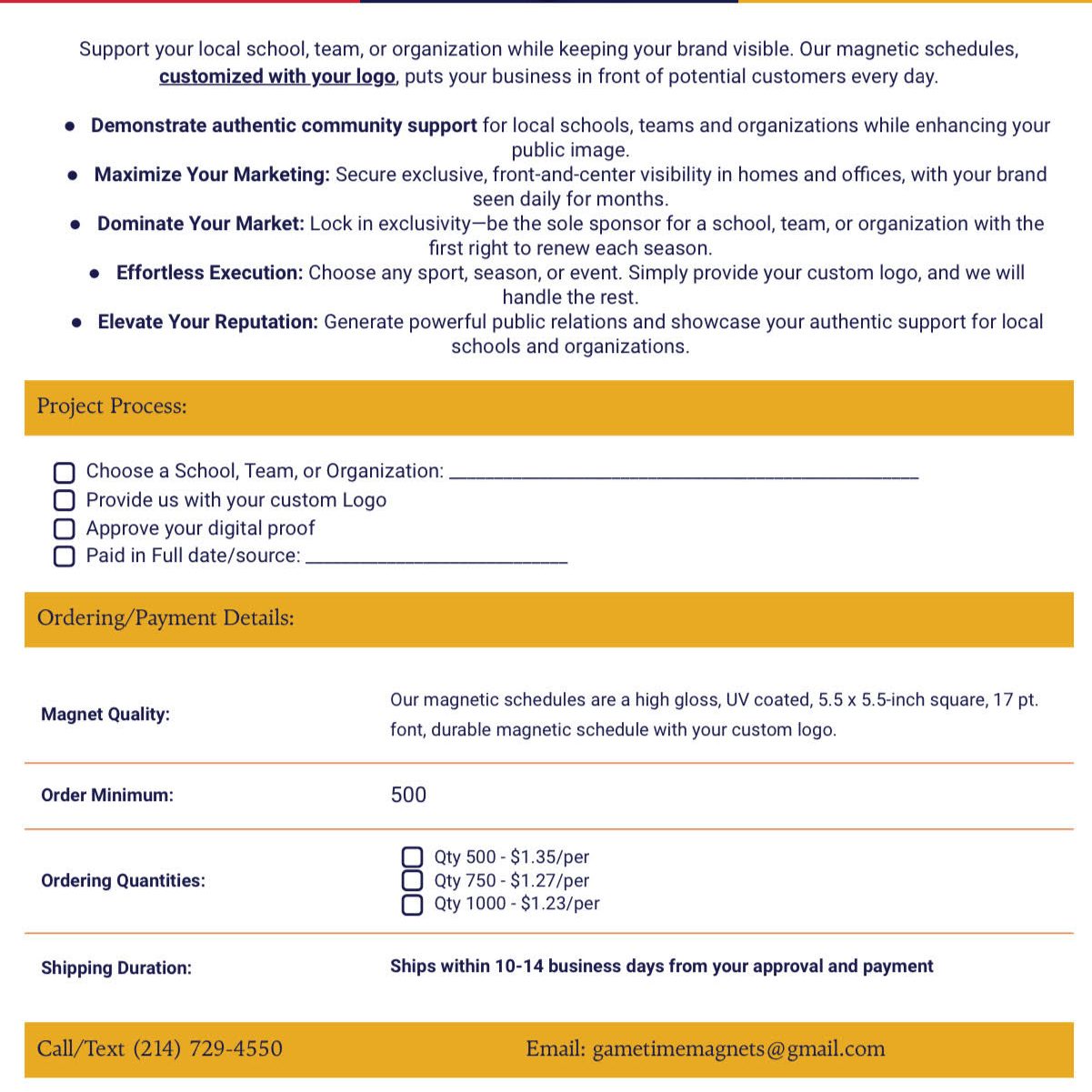 Partner with us to promote YOUR BRAND while supporting local schools, teams and organizations. Our custom magnets are an essential tool for visibility and community involvement.